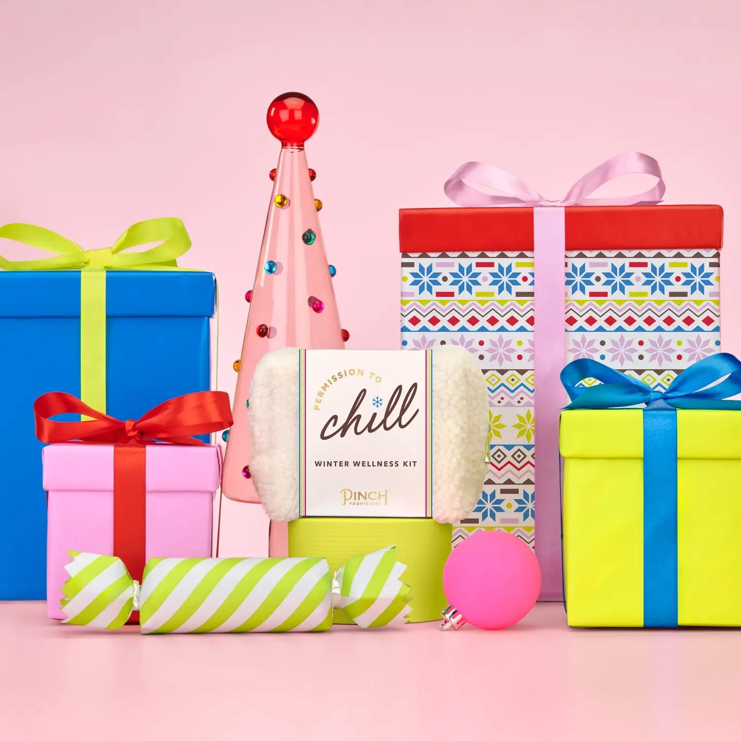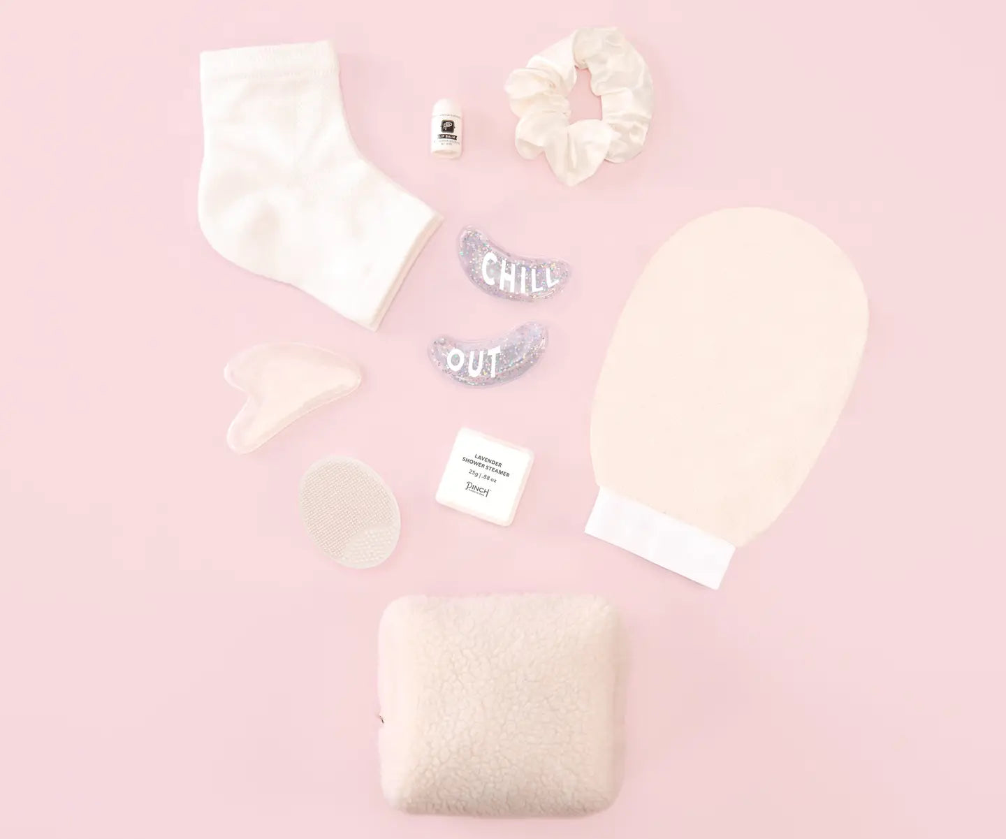 Need permission to chill? Get ready for some seasonal self-care with the Winter Wellness Kit from Pinch Provisions. Tucked in a large ivory sherpa pouch, this wintery mix of essentials will help you survive frosty conditions. The kit includes: sherpa scrunchie, under eye gels, silicone lip scrubber, eucalyptus shower steamer, exfoliating mitt, moisturizing heel socks, lip balm, and a gua sha.