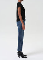The Valen is a mid-rise vintage straight jean with an ankle-grazing inseam, designed with a flattering square top block for a sleek, tailored fit. Crafted from comfort stretch regenerative cotton, these jeans offer both structure and flexibility for all-day wear. Pair with a relaxed tee or a sharp button-down for an easy, elevated look, or keep it simple with an oversized sweater for a laid-back yet refined vibe.