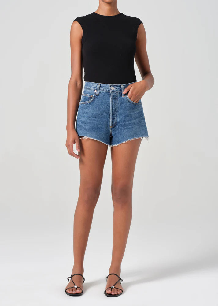 The Ridley Short in vintage indigo offers a sleek, high-rise, contoured fit that flatters effortlessly. With a nod to vintage style and a modern edge, they pair perfectly with an oversized blazer and loafers for a polished look, or with a relaxed knit tank and slides for a laid-back, effortless vibe. Crafted from regenerative cotton non-stretch denim, they offer a structured, durable feel while embracing sustainability.