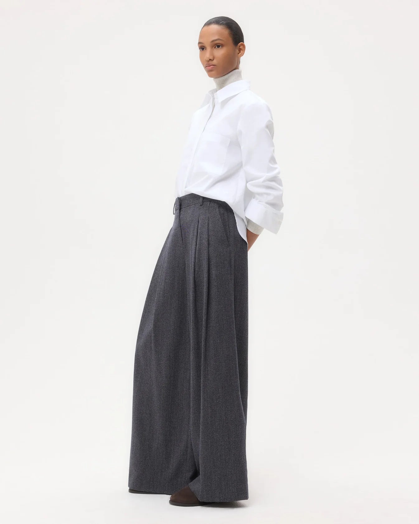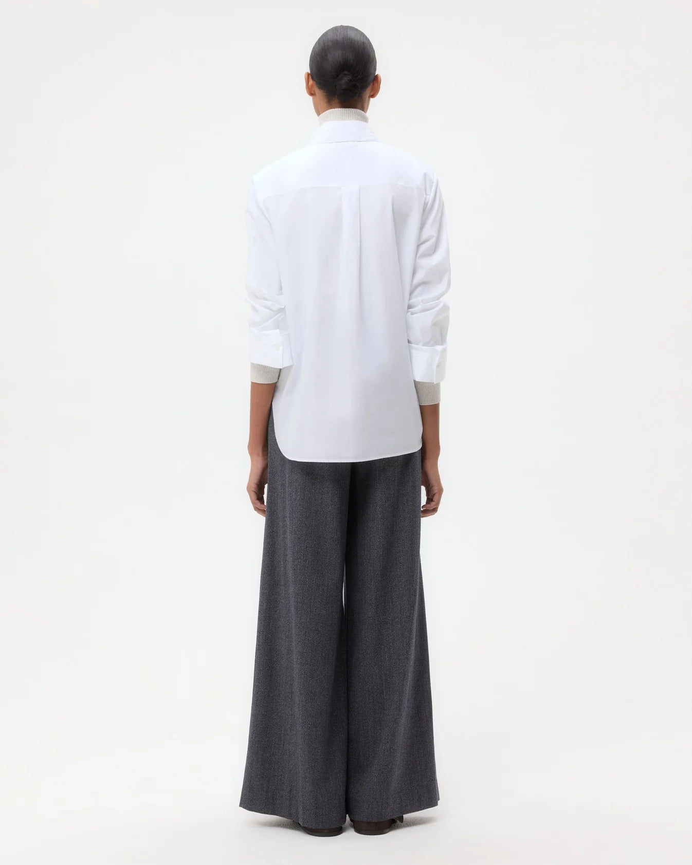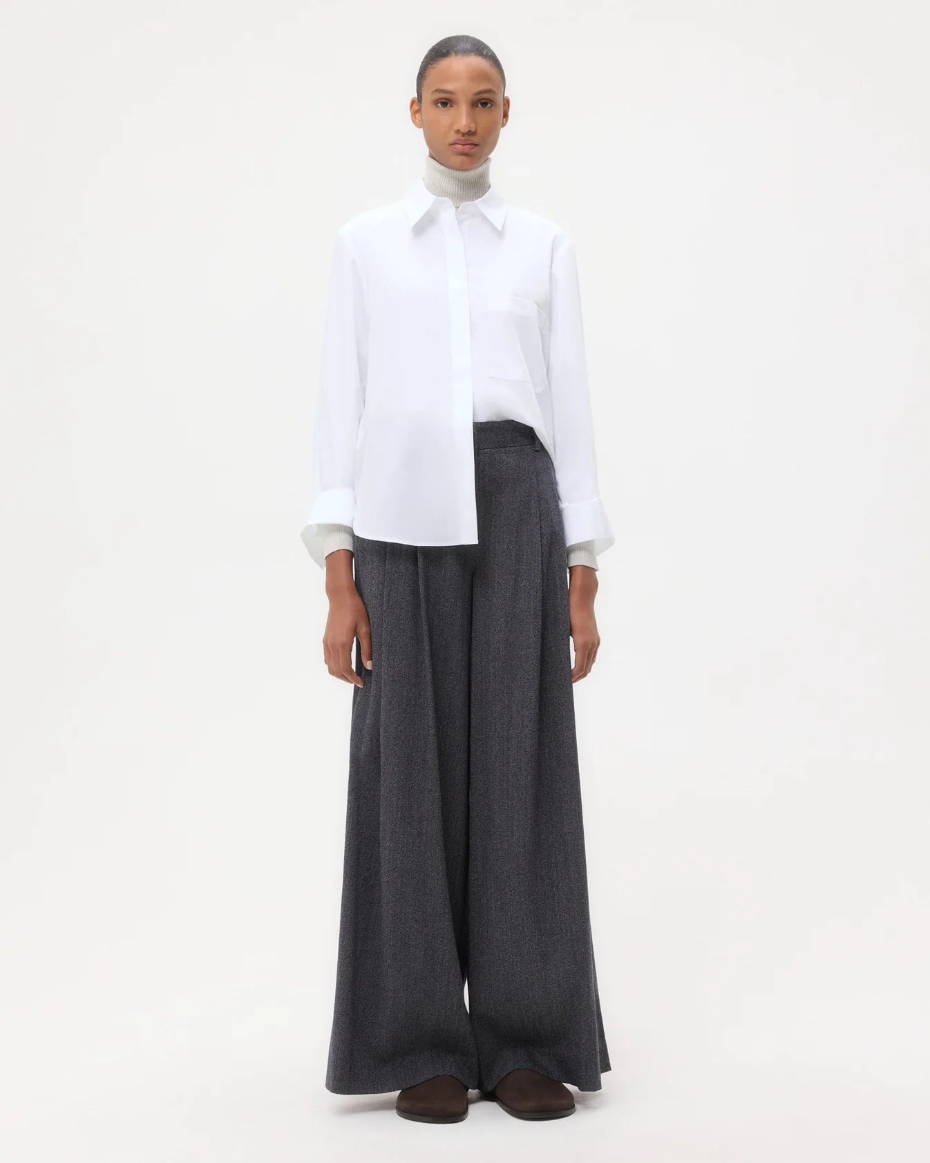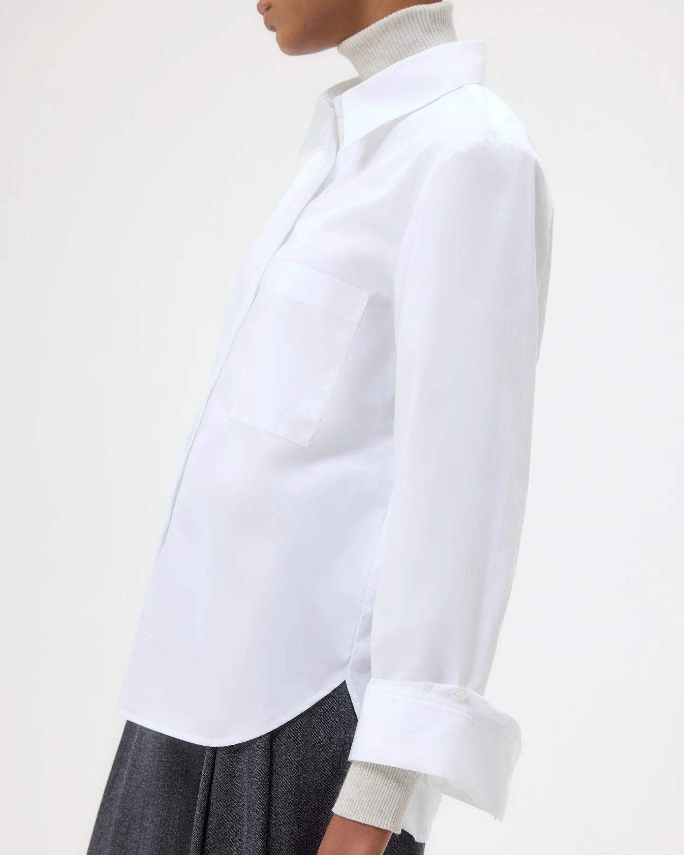 TWP’s signature button down crafted in superfine Italian cotton shirting. The Boyfriend is a relaxed fit complete with a chest patch pocket, concealed placket, curved hem, and staple single roll button cuffs.