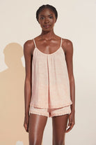 A new take on the classic Gisele, this ruffle-trimmed set shortie short with no piping, collar, or buttons