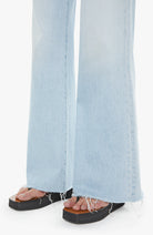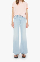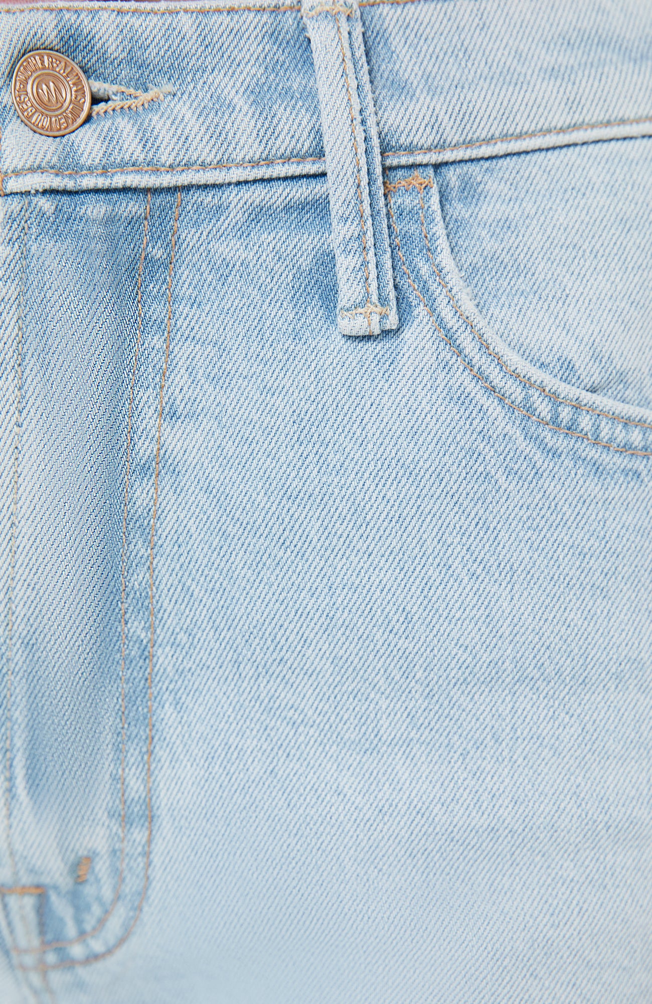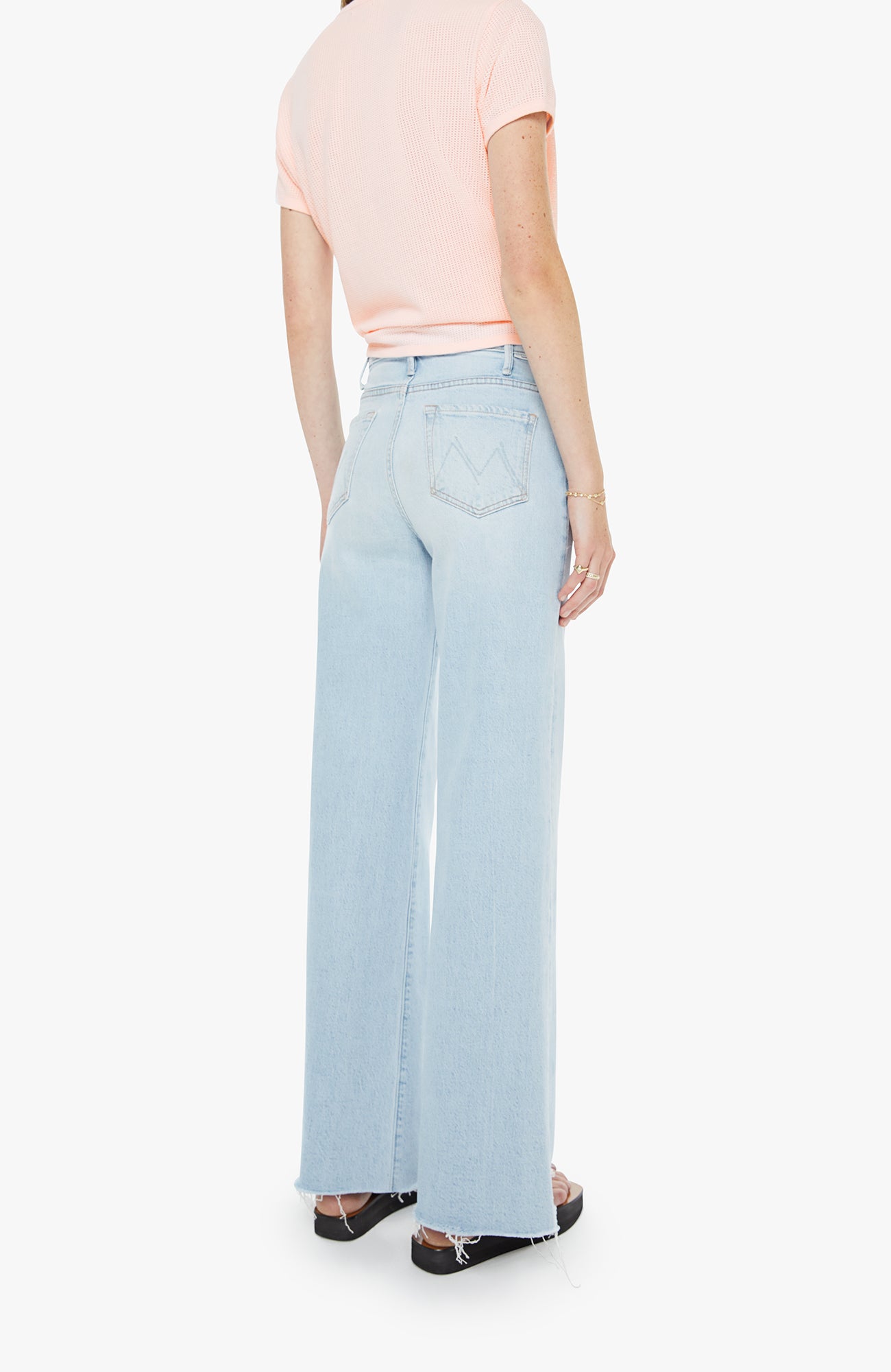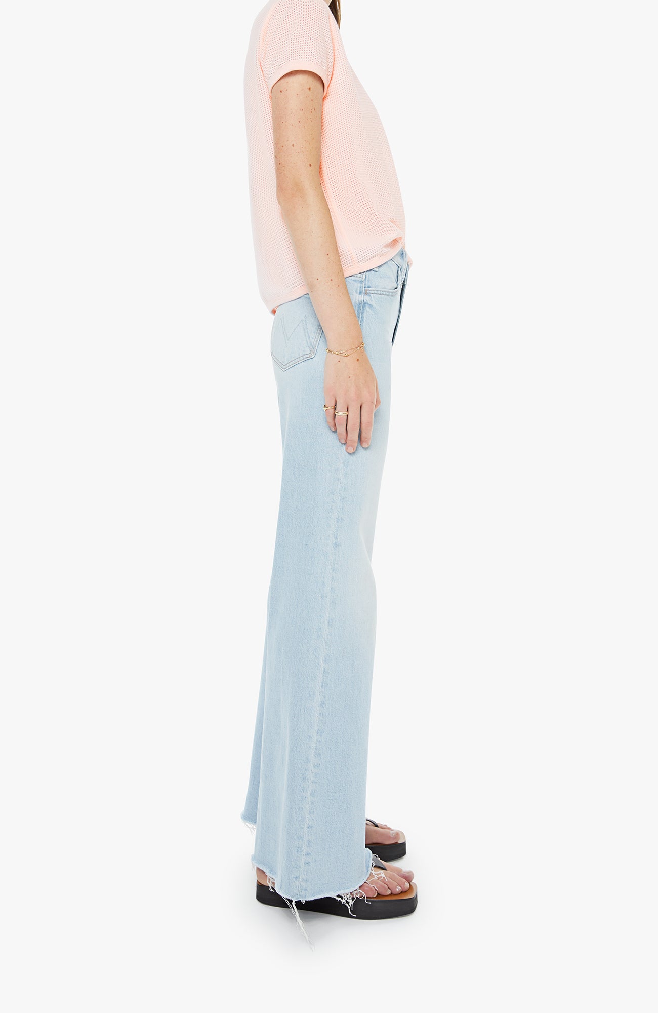 Chill out. 70s-inspired wide leg jeans with a zip fly, high rise, 31-inch inseam and a frayed hem. Made from denim with a touch of stretch, Bring The Cooler is a light blue with subtle fading throughout.