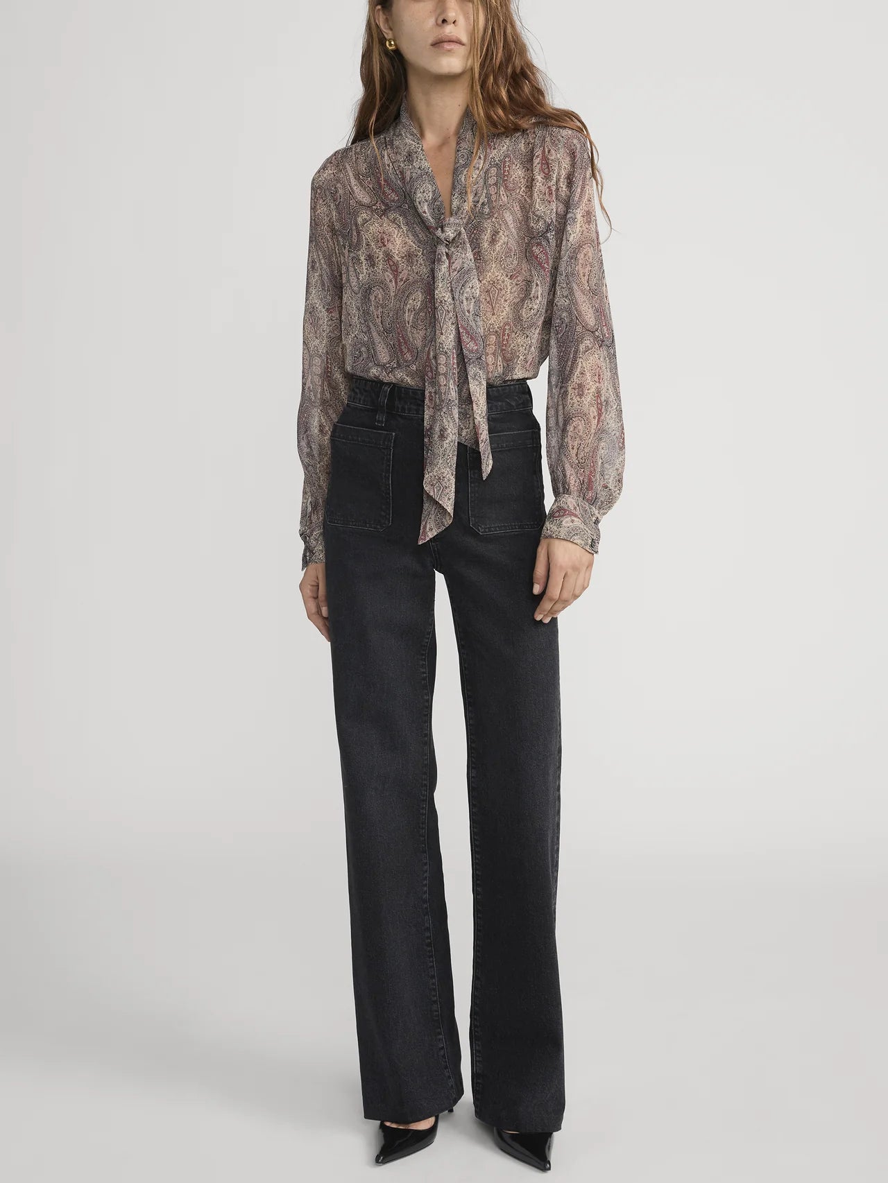 A '70s-inspired, high-rise, wide-leg jean with a sleek silhouette and front patch pockets. Crafted in denim with a hint of stretch for low-key comfort.