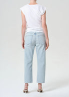The 90’s Crop Jean captures effortless vintage character with a mid-rise waist, relaxed fit through the hips, and a loose straight leg. Designed in a light washed-out indigo, it’s crafted from non stretch, weightless regenerative cotton denim that’s been washed down for a super soft feel. Pair it with a fitted tee and slides for a laid-back weekend look, or style it with a crisp button-down for relaxed polish.