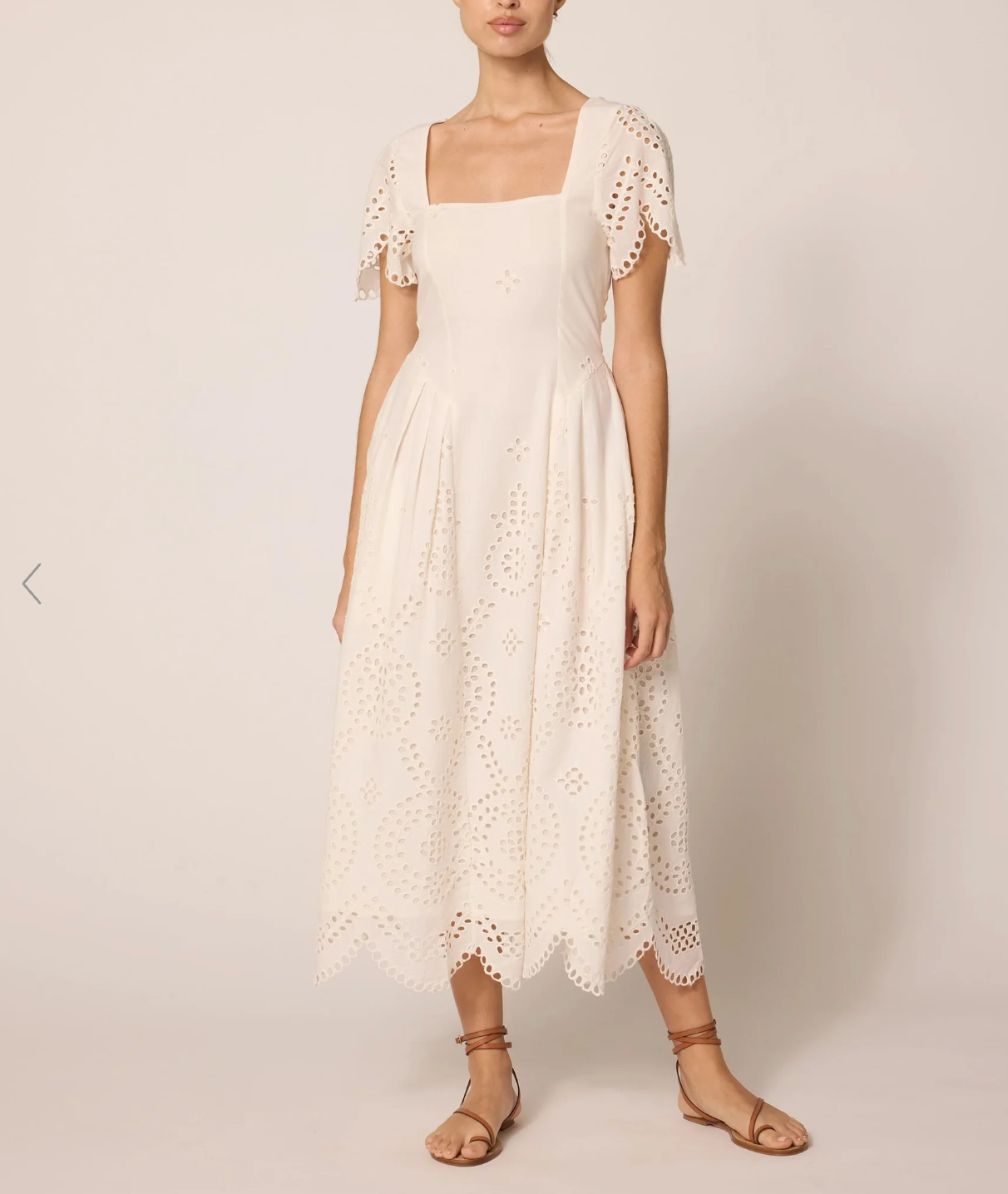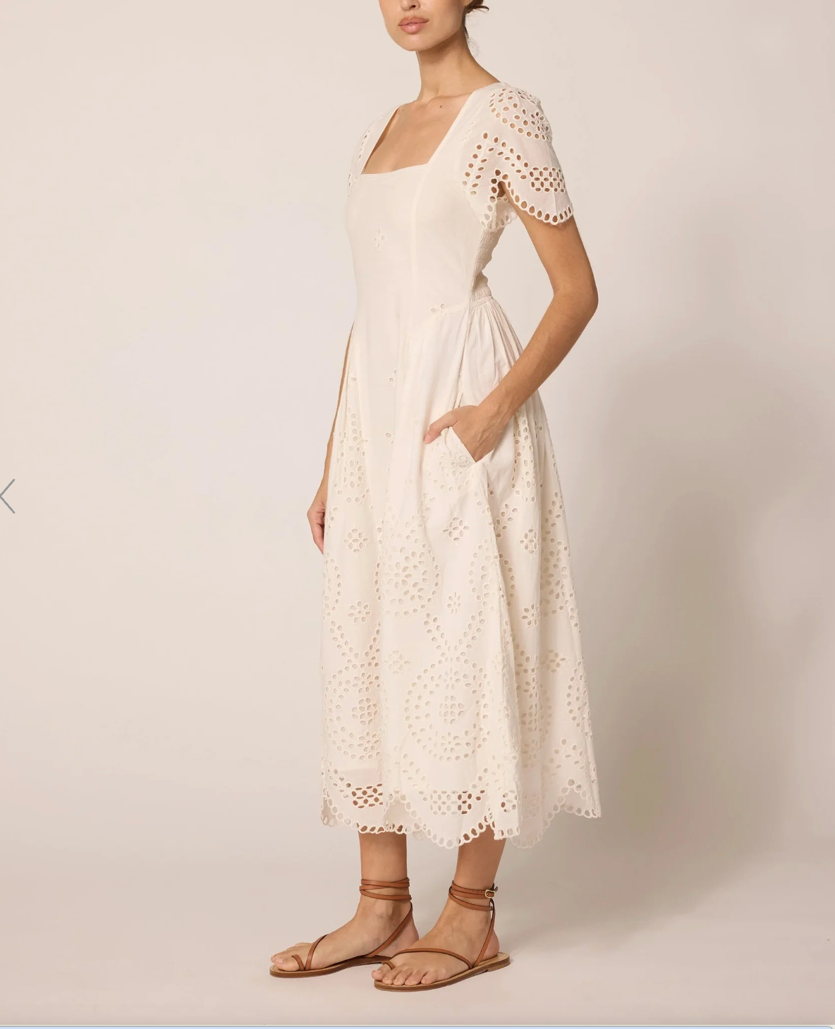 Ethically handmade in India from 100% organic cotton eyelet, the Yesenia Midi Dress is the perfect white dress for the warm weather. Elegant and chic, this dress features a delicate scalloped eyelet trim at the sleeve and hem and shirring at the hip for a unique dropped waist detail. Complete with pockets and a flattering square neck design, the Yesenia is a timeless piece that will have you turning heads.