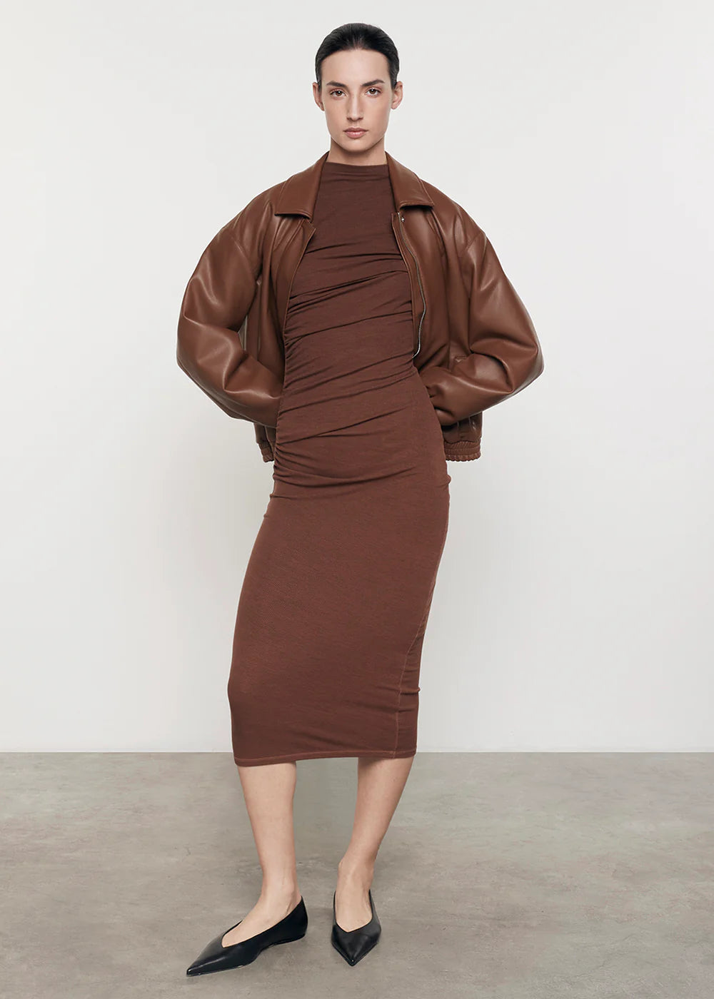 Crafted from our luxurious silk rib fabric for the most touchable softness and long-lasting quality, the Sleeveless Twist Midi Dress features a draped mock neck and ruching detail along the bodice, midi length.