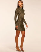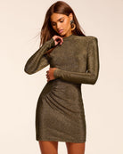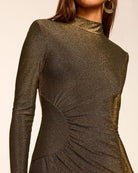 Your favorite bestseller, reimagined. This mini version packs all the glitter knit magic of our cult-favorite Amarilys midi dress into a playful shorter length. Same signature ruching, same show-stopping keyhole back–just more leg. Weekend parties just got infinitely more interesting.