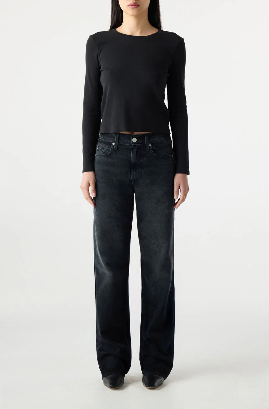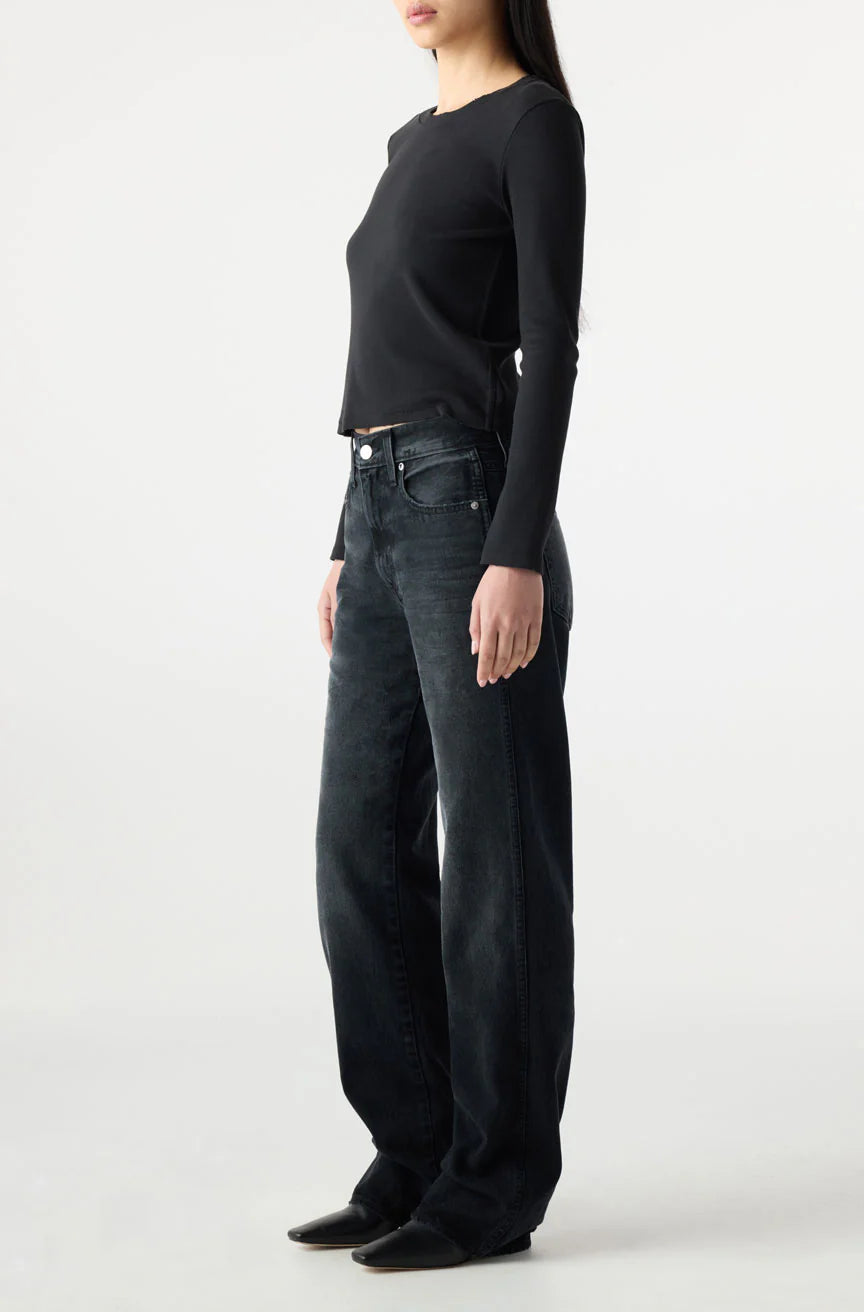 A high rise straight leg with a subtly slouchy feel. Easy through the hip and thigh, featuring a long inseam that’s perfect for a bit of stacking. Finished with a denim hem. Zip fly.