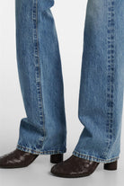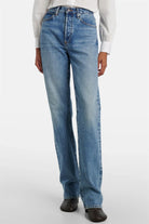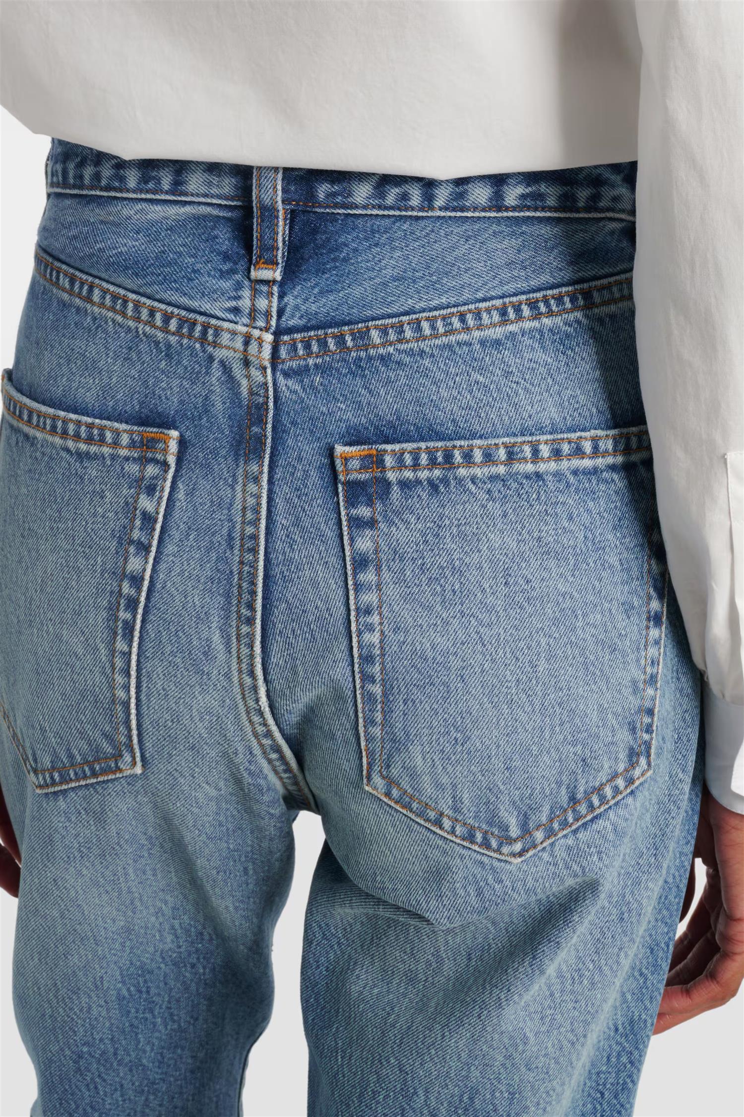 This classic straight-leg jean features a high-rise waist and full-length inseam, complete with a classic button-fly closure. High rise fit Machine wash cold 100% organic cotton 11.625" front rise / 32.5" inseam / 18" leg opening