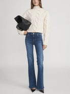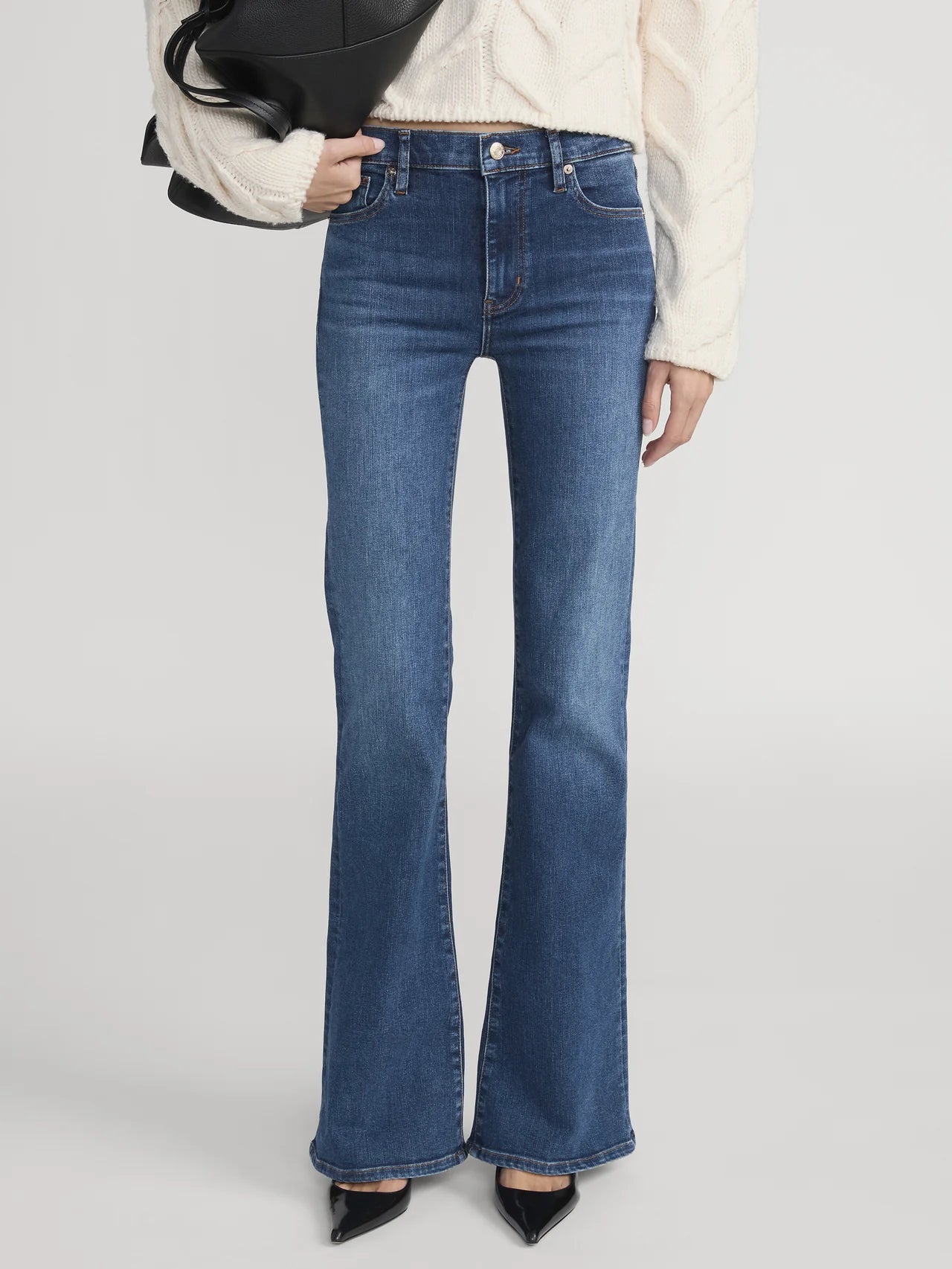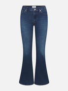 The Icon is a hip-hugging, super-stretch jean with a flare that breaks high on the leg. This subtle and flattering '70s silhouette pairs well with a heel.