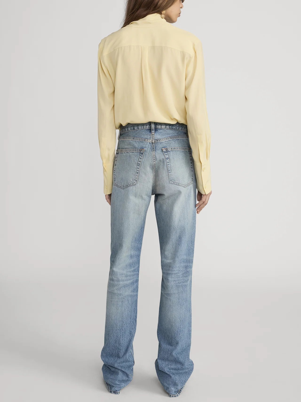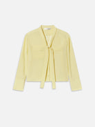 The Silk Modern Tie Blouse is crafted from 100% silk with a semi-sheer finish, featuring a soft tie-neck detail, double front pockets, and refined shirt cuffs—a best-selling silhouette reimagined in a new seasonal colorway.
