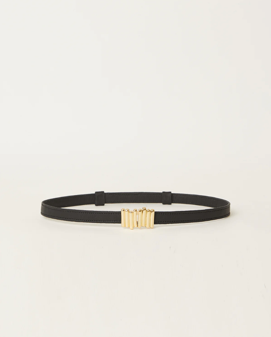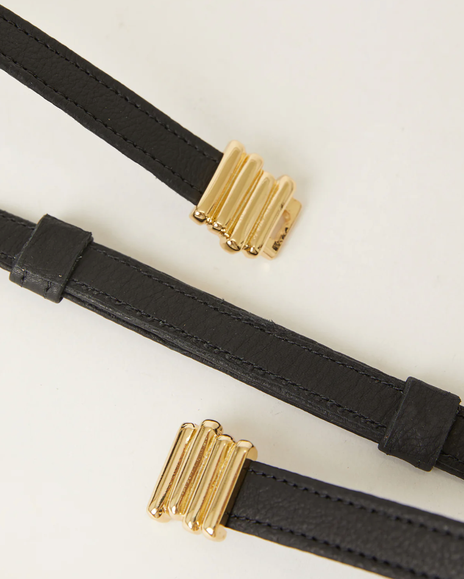Get the perfect fit with the Diem. Designed with a fully adjustable strap, style it around the waist. Featuring a beautiful gold buckle on a lightly pebbled leather strap.