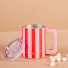 · 14 oz mug with handle · Comes with plastic lid · Stainless steel interior · Triple-walled insulated · BPA Free