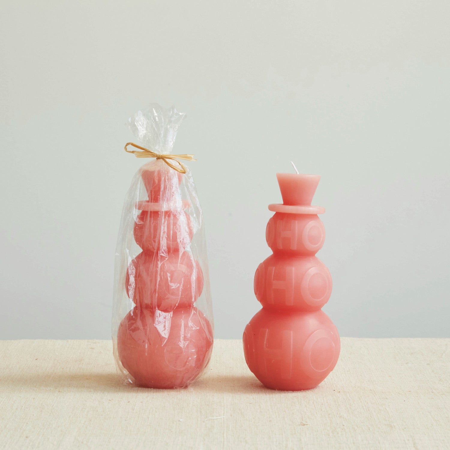 4" Round x 9"H Unscented Snowman Shaped Pillar Candle "Ho Ho Ho", Pink (Approximate Burn Time 120 Hours)