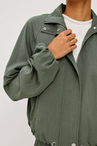 Softly draped, perfectly shaped. The Blake Jacket has a relaxed, oversized fit with a high funnel neck and double-button closures, long dropped-shoulder sleeves with elastic cuffs, and a cropped drawstring hem.