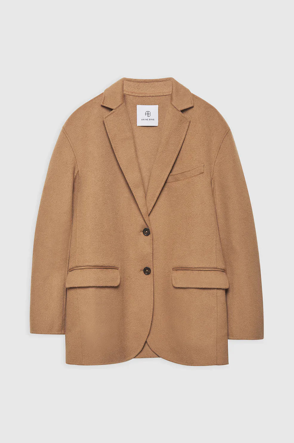 An unconstructed blazer made from a heavyweight, double-faced wool-cashmere blend, featuring a classic oversized fit, notched collar, and single-breasted closure with two buttons.
