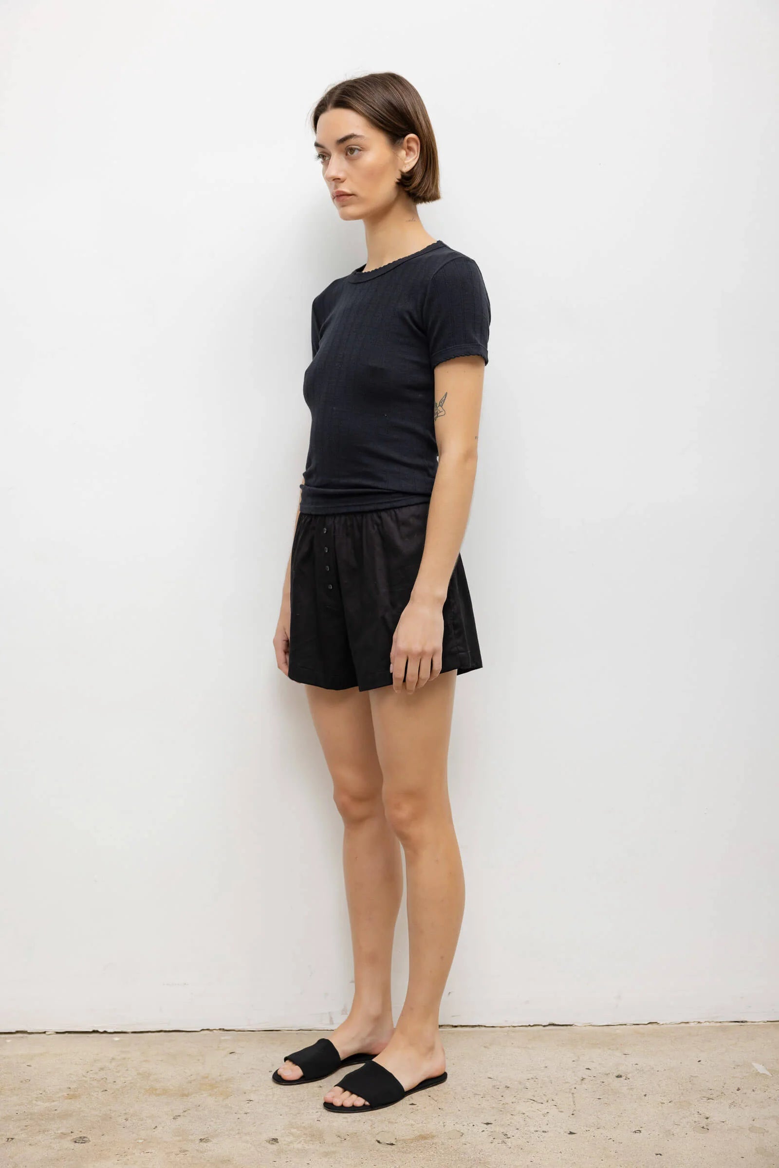 Perry Crew Short Sleeve Tee - White + Navy Stripe
