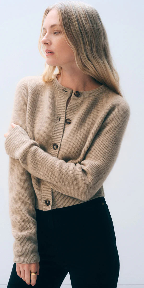 We brought back our popular cashmere waffle texture in the form of this covetable cardigan. A straight fit and finely ribbed trims add subtle definition. Slip it on over a tee or wear it on its own on days out.