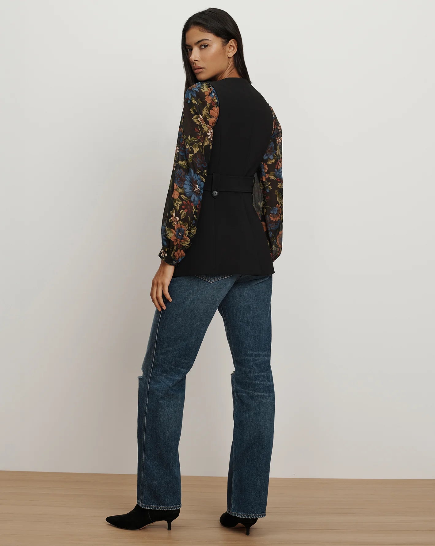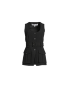 A sleek vest with a utilitarian edge. Expertly tailored from a premium stretch blend, the Becker features a slim, waist-defining fit with a wide belt and double cargo pockets. A cutaway hem and U-neckline add a modern, feminine touch. Style it with black wide-leg trousers and heels for a refined look, or dress it down with denim and ballet flats.