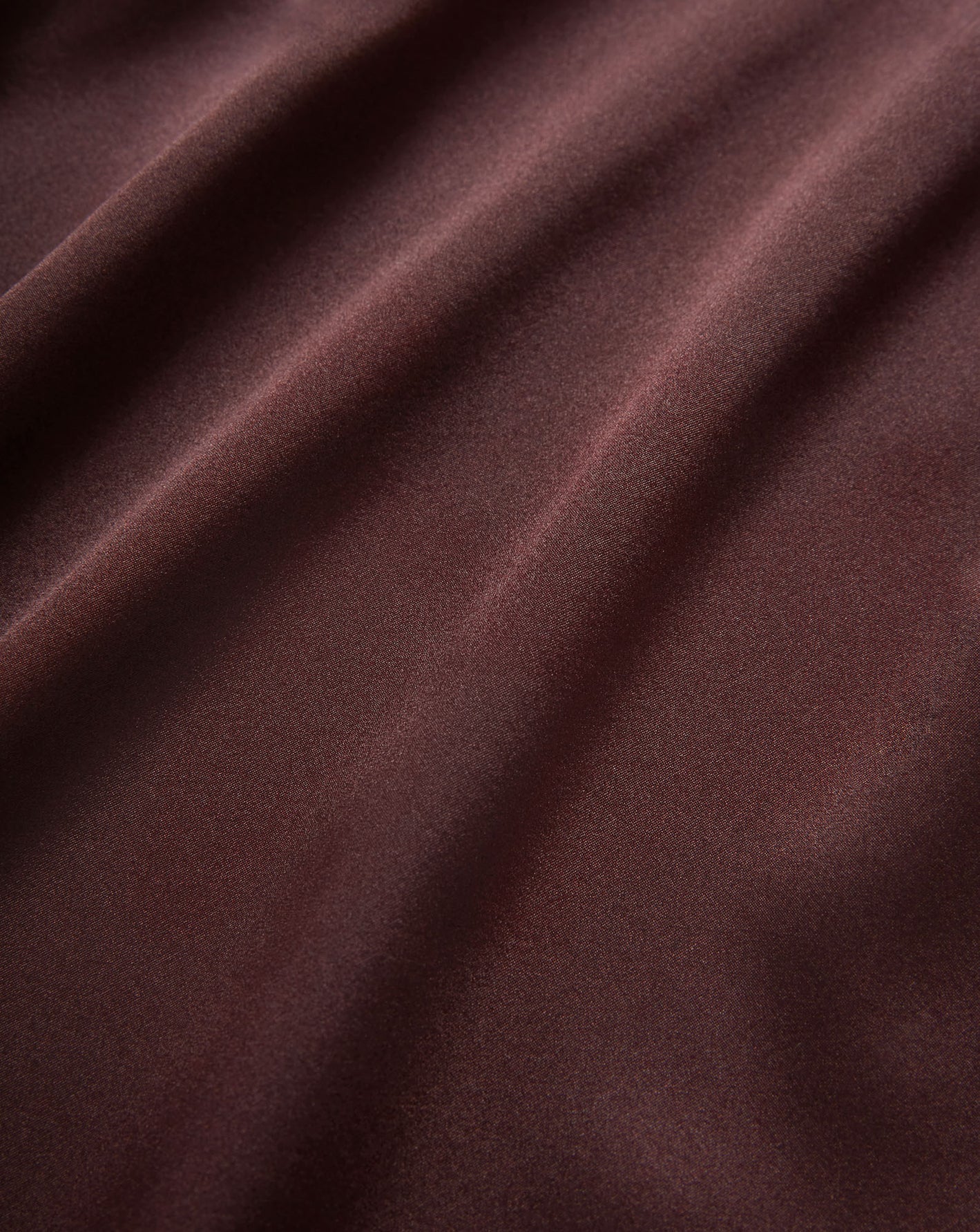 The silk top that does it all. With its slinky drape and elegant cowl neckline, the Tam is cut from luxe maroon stretch silk and finished with a delicate keyhole back. Pair it with high-rise denim for after-hours ease, or go full glam with the coordinating Medina skirt.