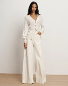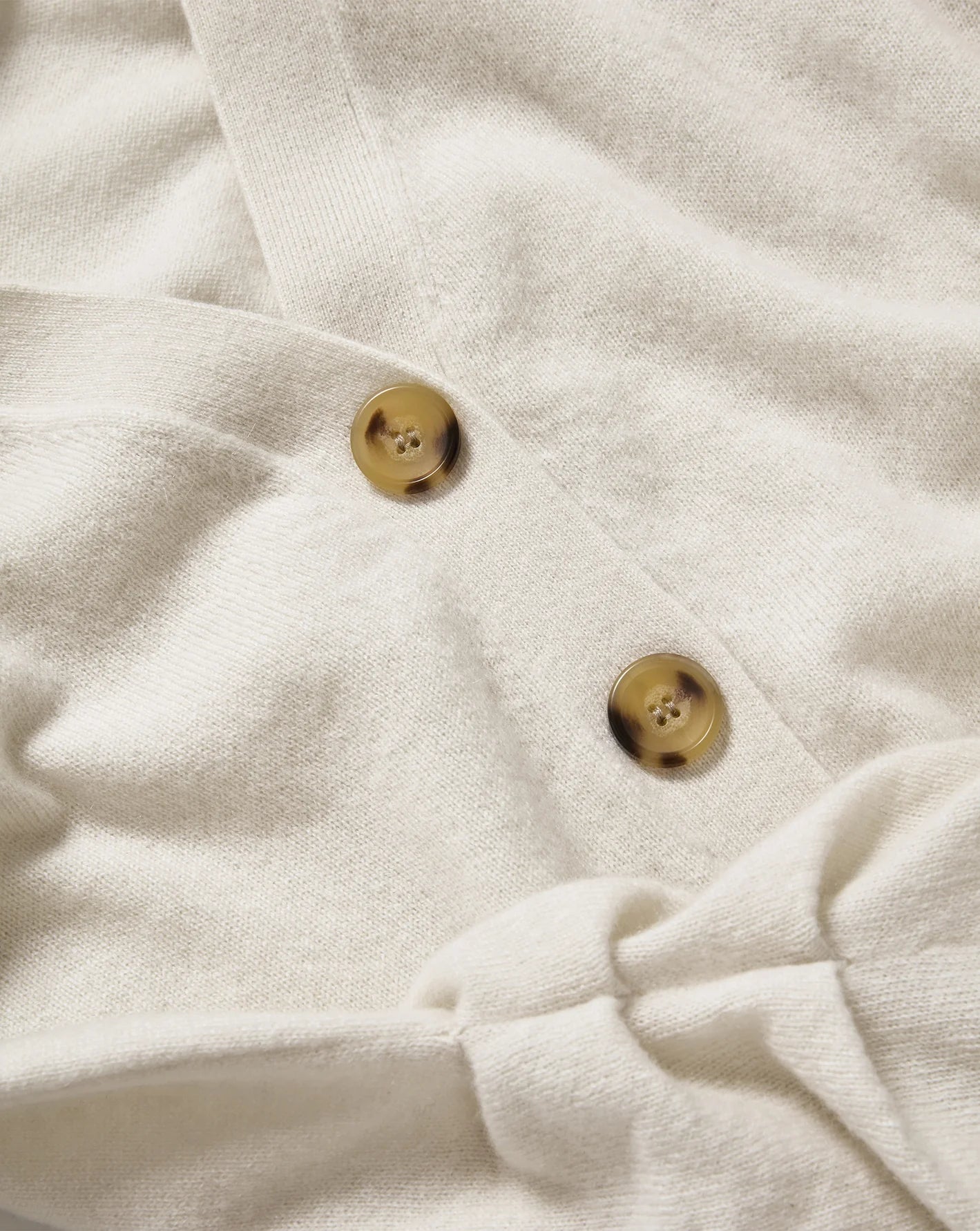 The cardigan that works overtime. Spun from ivory cashmere with a luxuriously soft feel, the Lamotte features a deep V-neckline and a split hem for flattering shape. Oversized blouson sleeves and ribbed trims complete the design, making it this button-down sweater the perfect finish to any look. Style with trousers for an elevated take or denim for a more laid-back feel.