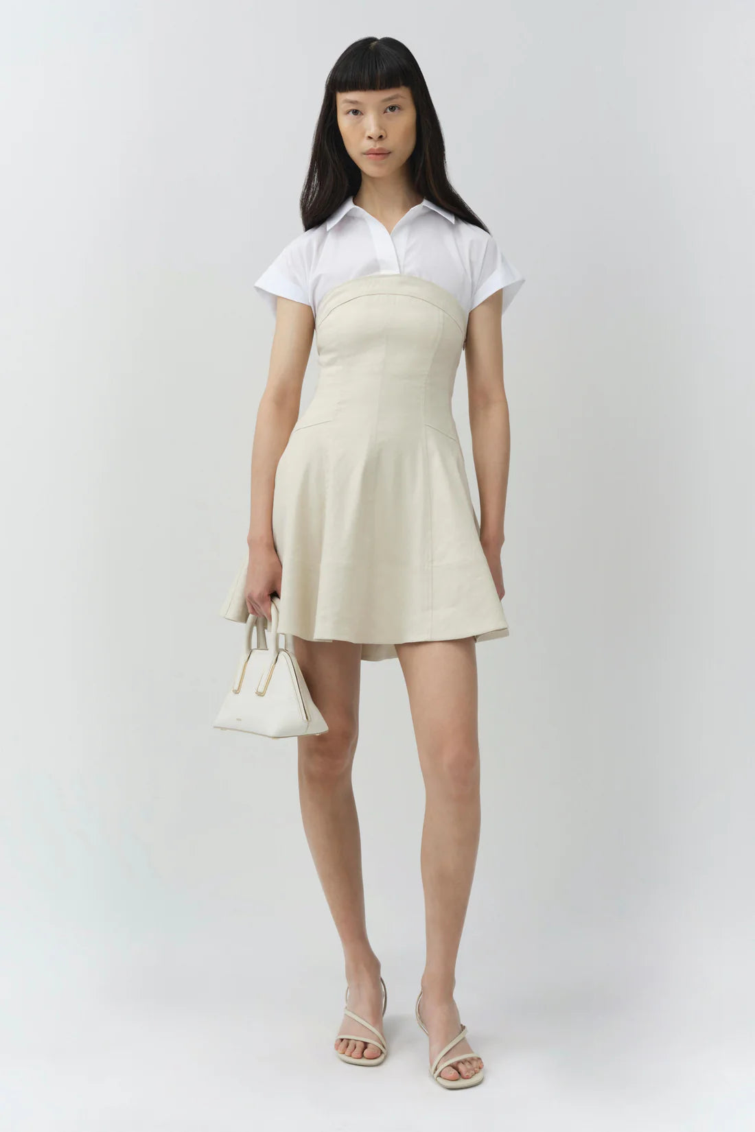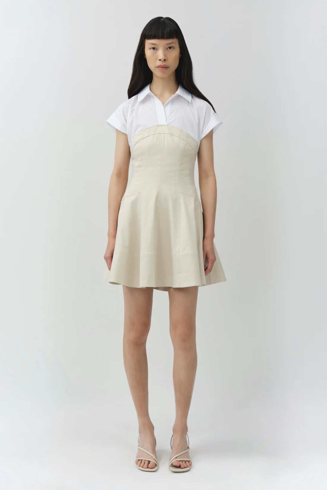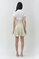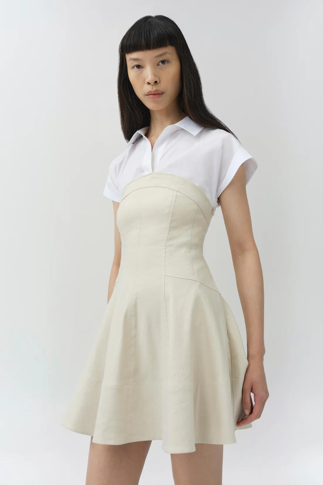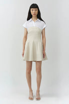 The Sundae Linen Mini Dress in Sand MultiCrafted from linen and cotton poplin, this mini dress features a structured bodice with a softly flared skirt for a clean, sculpted shape. A built-in shirting layer gives the piece it's pre-styled look and a polished, contemporary edge.