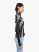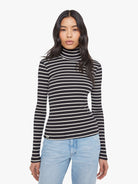 A long sleeve top with a folded turtleneck and a narrow fit. Made from 100% cotton, the top is designed in black with thin white stripes.