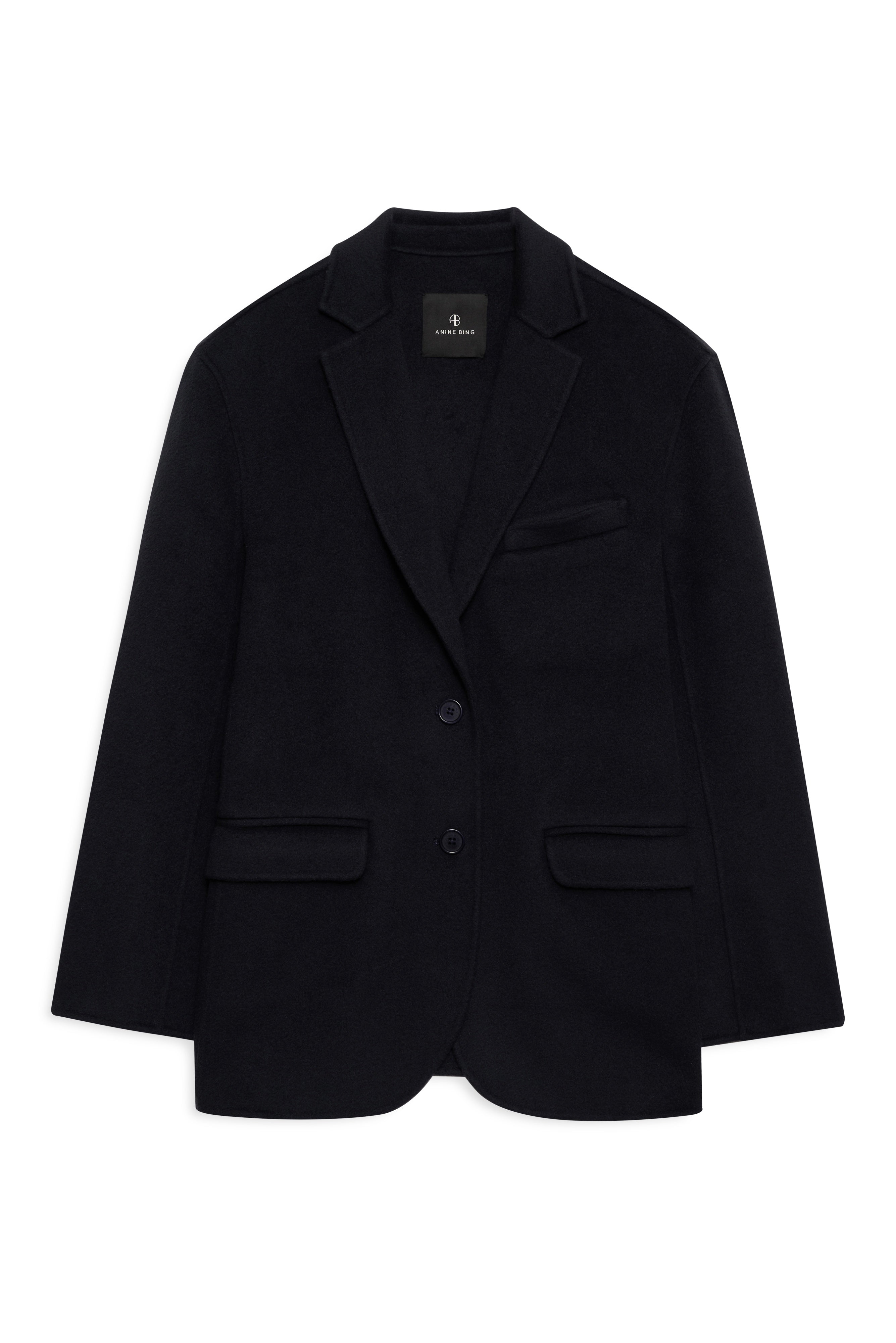 An unconstructed blazer made from a heavyweight, double-faced wool-cashmere blend, featuring a classic oversized fit, notched collar, and single-breasted closure with two buttons.