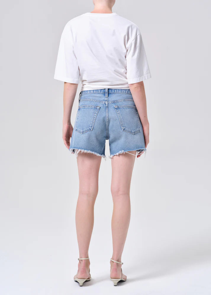 The Parker Long reimagines our iconic short with a slightly longer inseam and a high-rise waist for a relaxed, easy fit. Finished in a light vintage indigo wash, it captures the soft, worn-in character of true heritage denim. Crafted from a rigid non stretch cotton blend, this style offers a soft hand feel and all-day wearability while maintaining its structured silhouette. Effortlessly versatile, it pairs seamlessly with everything from classic tees to elevated shirting.