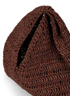 The Simone Bag is woven from 100% raffia in a rich chocolate hue. This mini silhouette features a soft, flexible shape and a twisted handle for a modern, sculptural finish.