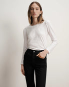 A home run. Mason is an elevated take on the classic baseball tee, featuring subtly puffed shoulders for a feminine twist. Cut for a relaxed, easy fit, it's crafted from 100% Pima cotton for an exceptionally soft feel and finished with three-quarter sleeves and a classic crew neckline. Style it with dark skinny denim and boots for an effortless, polished look.