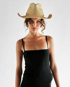 Sacha is made from straw harvested from the frond leaf in Madagascar and hand-crocheted into a light, durable fiber. This western straw fedora provides structural design capability in the brim and crown, allowing for any shape alterations. Available in three shades, this style is finished with our signature knot at back of band.