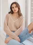 Shaker Knit Sweater With Contrast Piping
