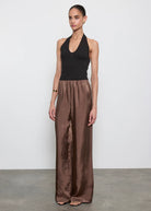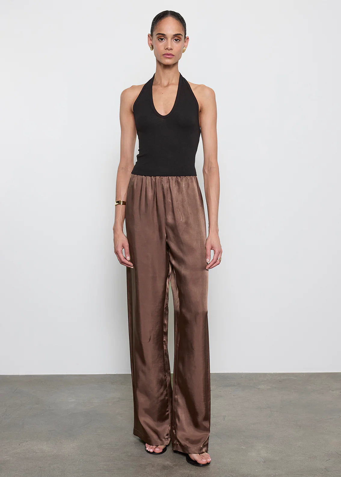 Relaxed pull-on pant in woven silky twill. Elastic waistband.