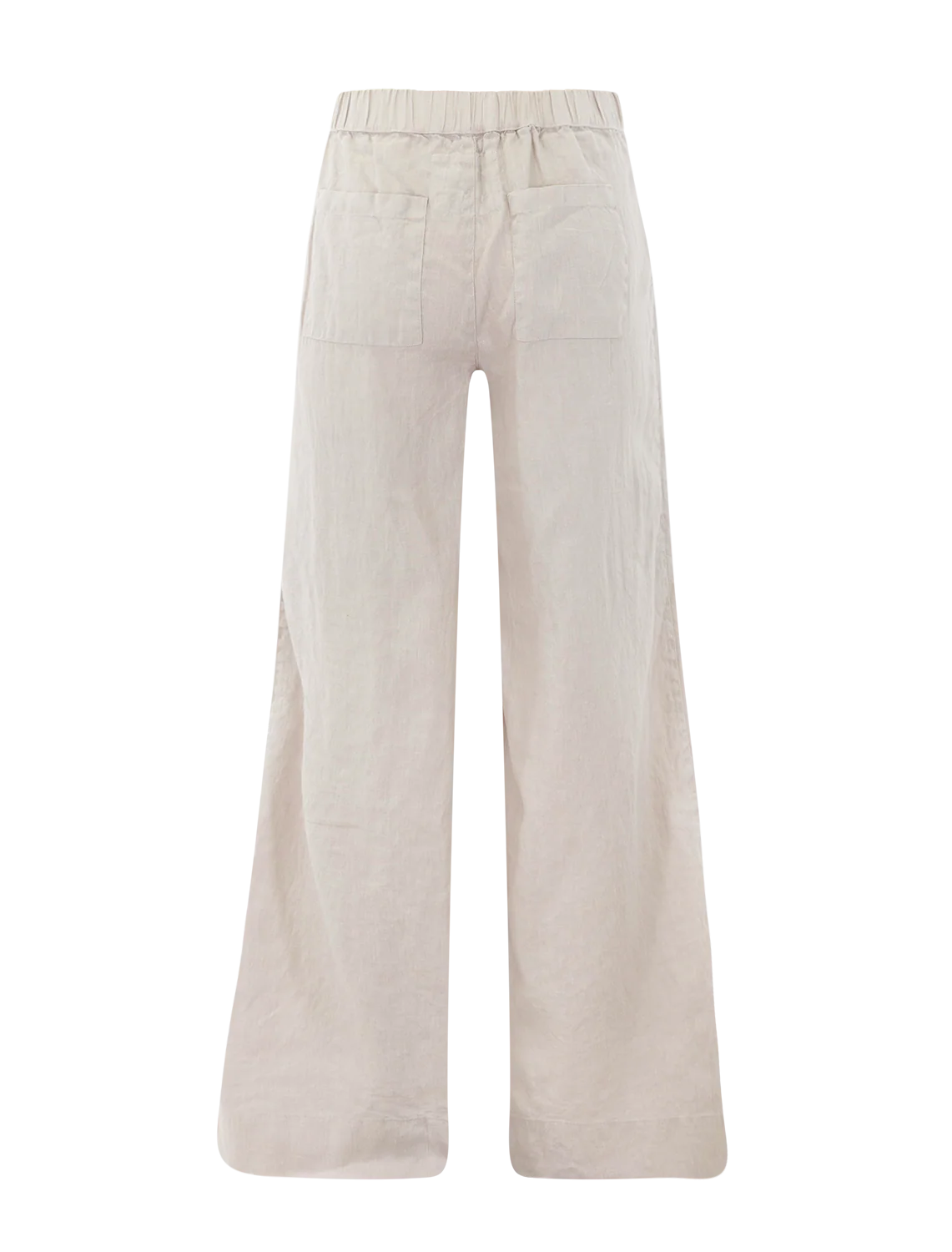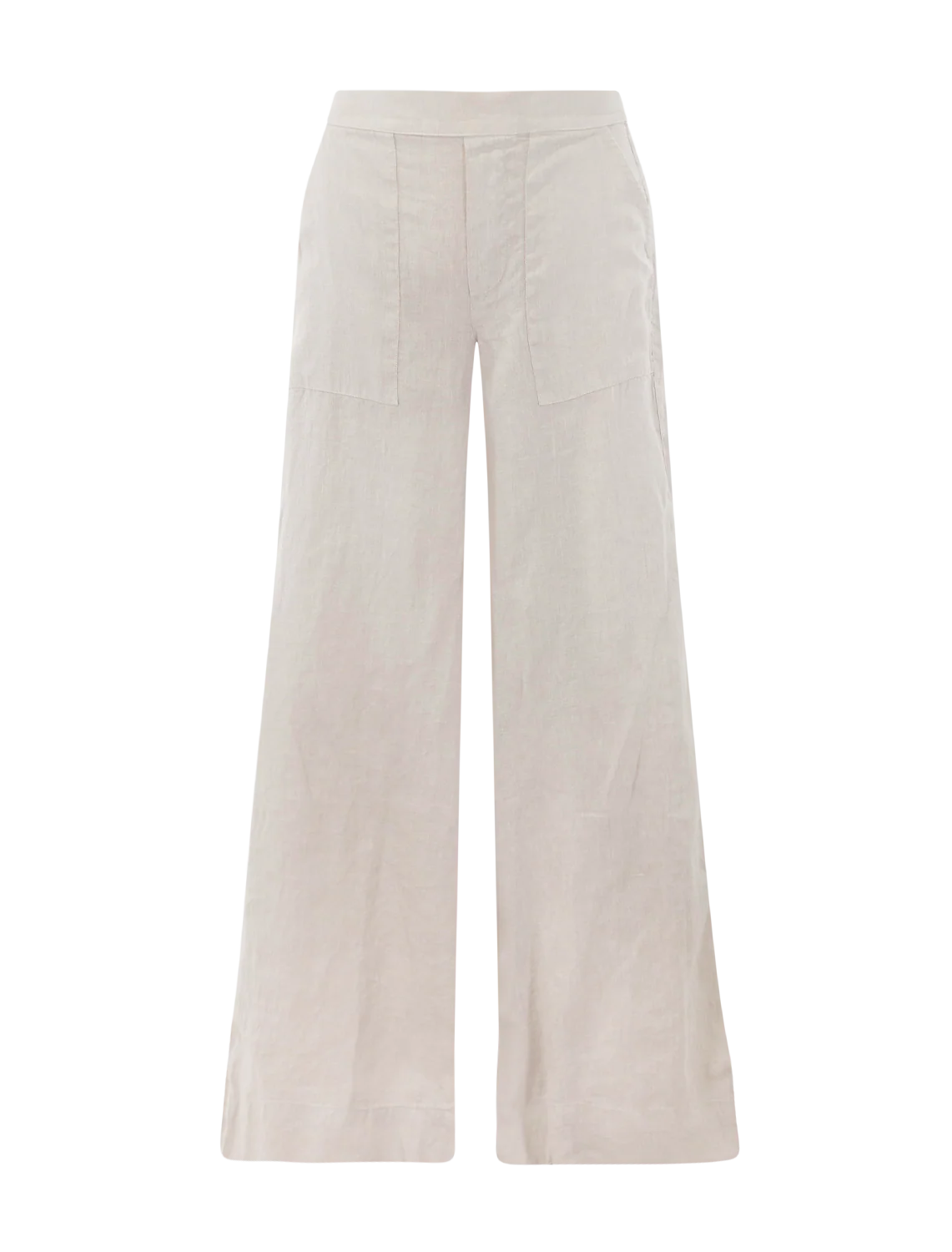 The Madeline Patch Pocket Pull-On Pant captures relaxed sophistication with a fluid wide-leg silhouette designed for effortless movement. Its pull-on design and softly structured waistband create an easy, flattering fit, while oversized patch pockets add modern utility. Lightweight and breathable, this linen essential brings understated elegance to warm-weather dressing.