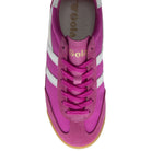 With much chatter on terrace influenced sneakers having their moment, Gola Tornado sweeps in at the speed that its name suggests. A heavy weave nylon upper in shocking pink is complemented with matching suede trims to the toe, heel and lace facing and contrasted with a white Gola wingflash side trim with sawtooth edges. Sat upon a slight wedge gum sole, Tornado for women offers the full old school sneaker package.