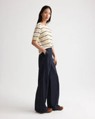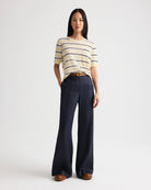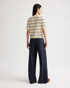 Short sleeve tee in superfine cashmere with a stripe. The Striped Short Sleeve Tee is a relaxed, slightly boxy silhouette with a chest patch pocket. Complete with fully fashioned rib trim at the neck, cuffs, and hem.