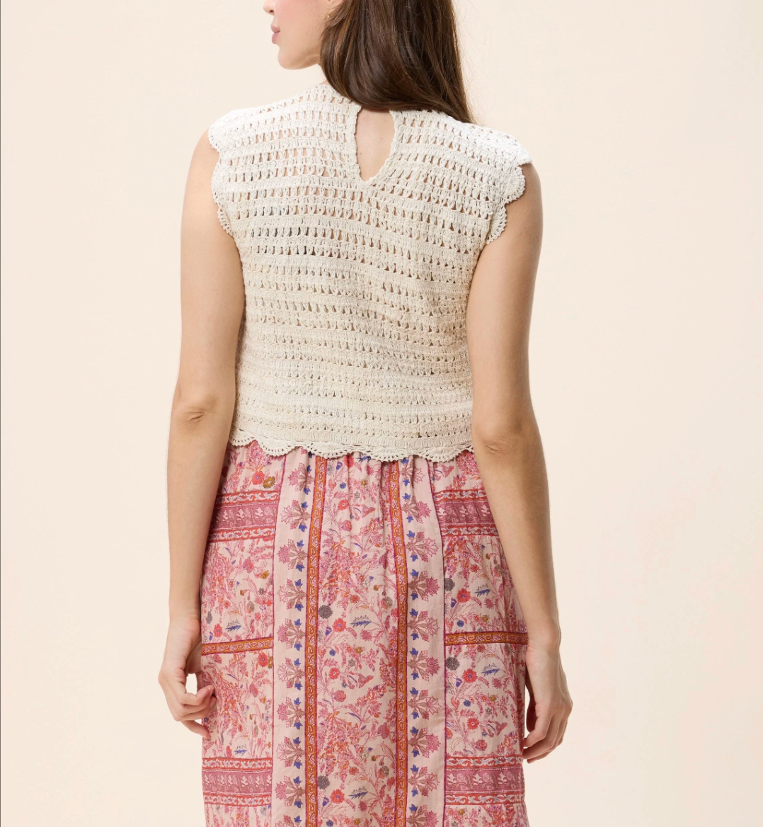 Hand-crocheted from cotton yarn, the Astra Top features a cropped, sleeveless silhouette finished with delicate scalloped edges. An effortless staple made with intention for your sustainable wardrobe.