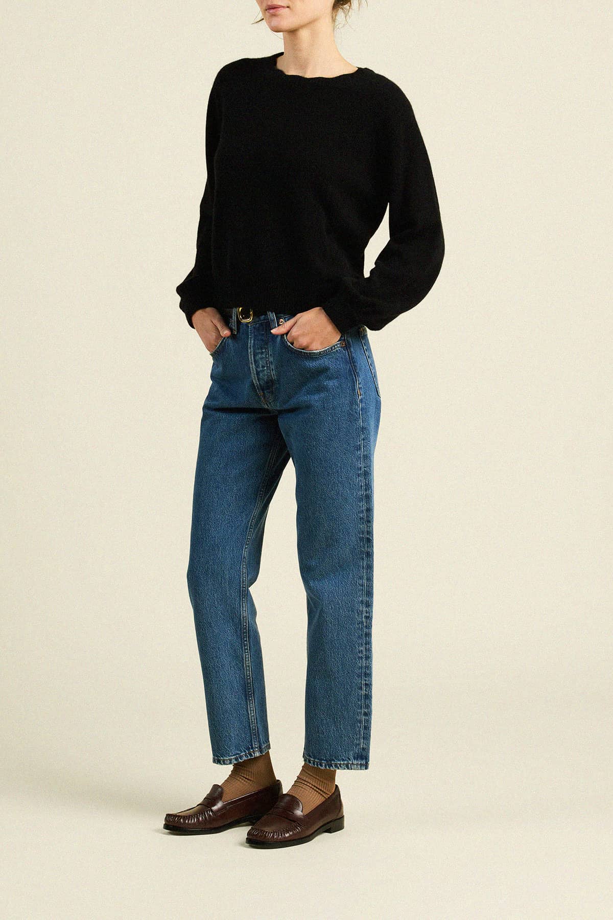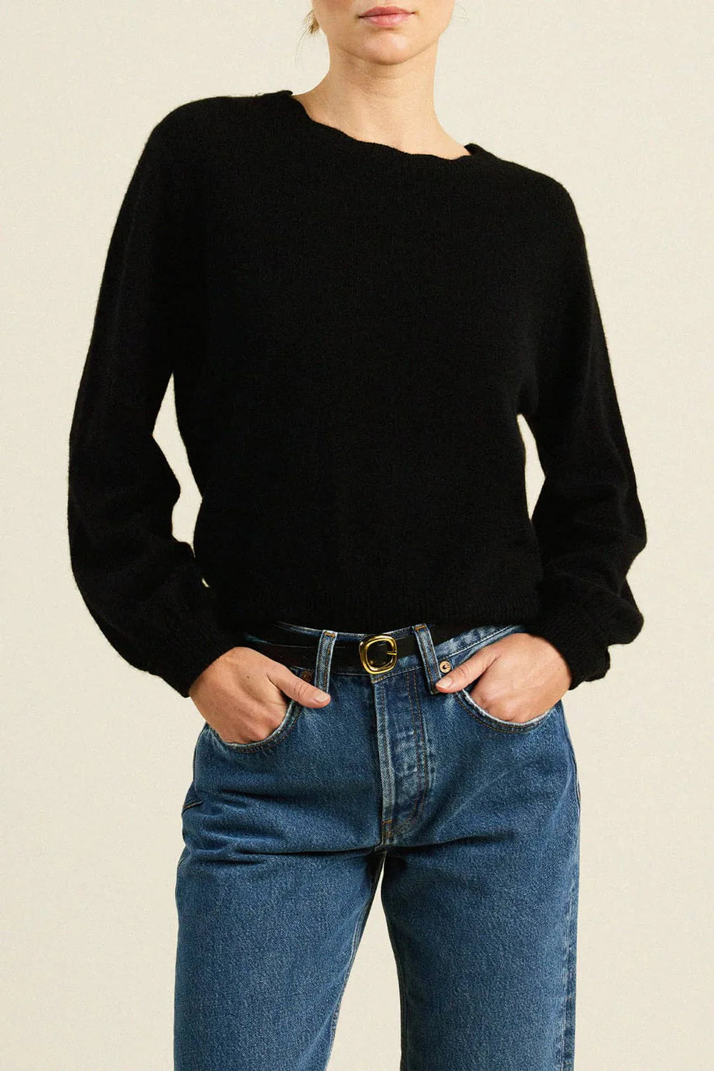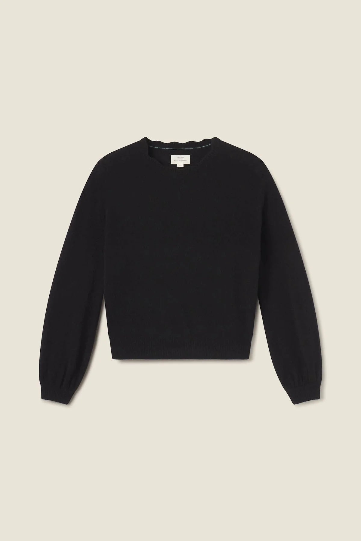 Our cashmere crewneck is soft and lightweight, perfect for all seasons. Shown here in Black. Made from our soft 100% cashmere.