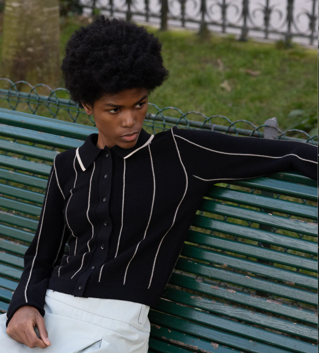 Introducing the Cardi, a piece that redefines the classic button-front. This knit cardigan offers a perfect balance of structure and softness. The rich cream knit is elevated by a series of subtle, contrasting seams that sculpt the body and add a layer of visual intrigue. Wear it buttoned as a standalone top with tailored trousers for a sharp, modern look, or layer it over a slip dress for a touch of refined texture. The Cardi is an investment in enduring style.