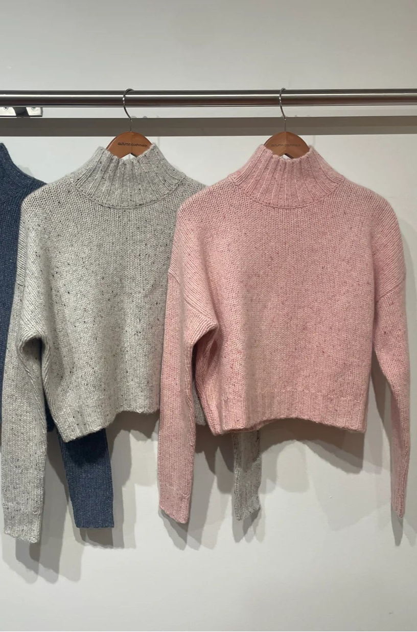 Stay cozy this season in this ultra-plush Boxy Chunky Mock Sweater from Autumn Cashmere. Crafted from the brand's signature soft cashmere, this sweater boasts a feminine pink palette, dropped sleeves, a warming mock neck, and ribbed accents.