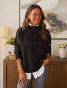 Monterey Rolled Funnel Neck Sweater - Black Glitter