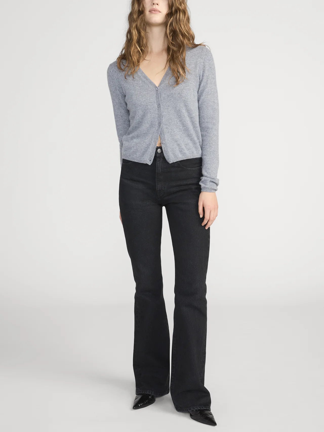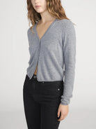 The Cashmere V Cardi is crafted from ultra-soft, fine-gauge 100% cashmere, featuring a lightweight feel, clean button closure, and a cropped silhouette for effortless layering.