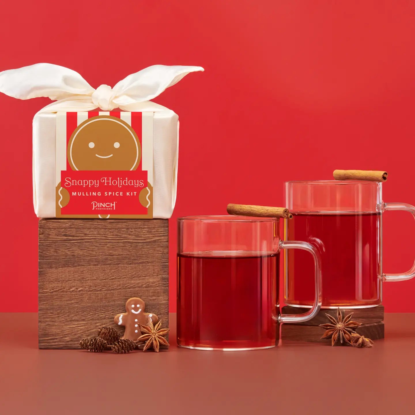 Hand tied with a Furoshiki-style scarf, each darling kit contains enough for 4 servings of mulled wine or cider.