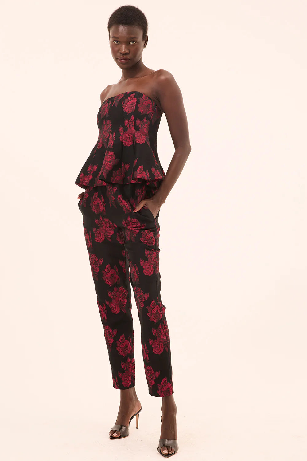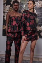 Piper is a holiday standout strapless peplum top cut from luxe Midnight Rose brocade. Chic and modern, it features flattering seam detailing from bust to hem and a fitted silhouette with an elasticated back for comfort and a hidden side zip closure. Pair with wide-leg trousers and an oversized blazer, or create the perfect holiday set with the coordinating Ria pant.