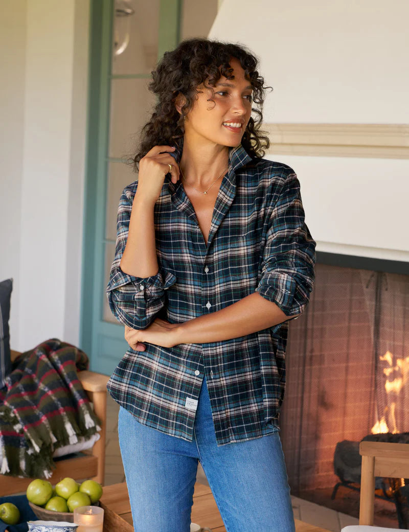 Eileen Relaxed Button-Up - Grey Yellow Blue Plaid