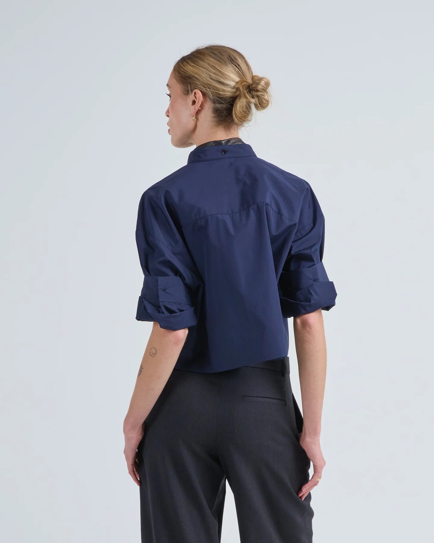 • Boxy, cropped silhouette with back yoke