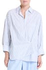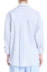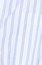 Oversized button down in striped italian cotton shirting. The Earl is a relaxed, oversized shirt with an asymmetric button front. Complete with a spread collar, chest patch pocket and our staple single rolled button cuffs.
