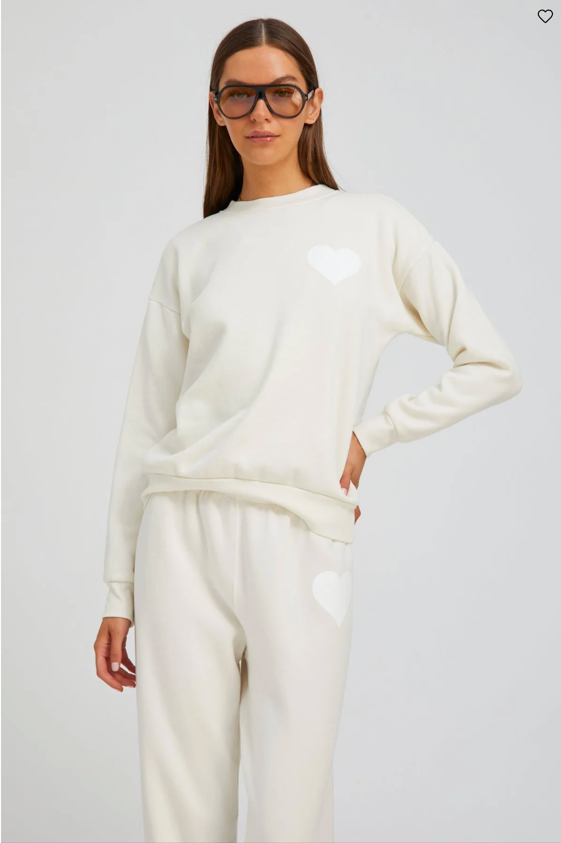 Heart Sweatshirt - Vintage White W/ White Heart