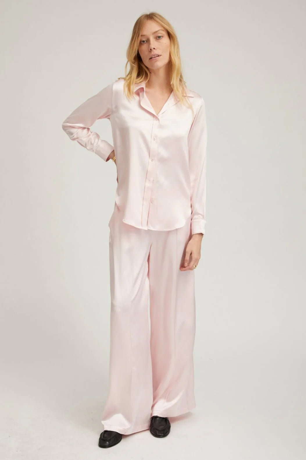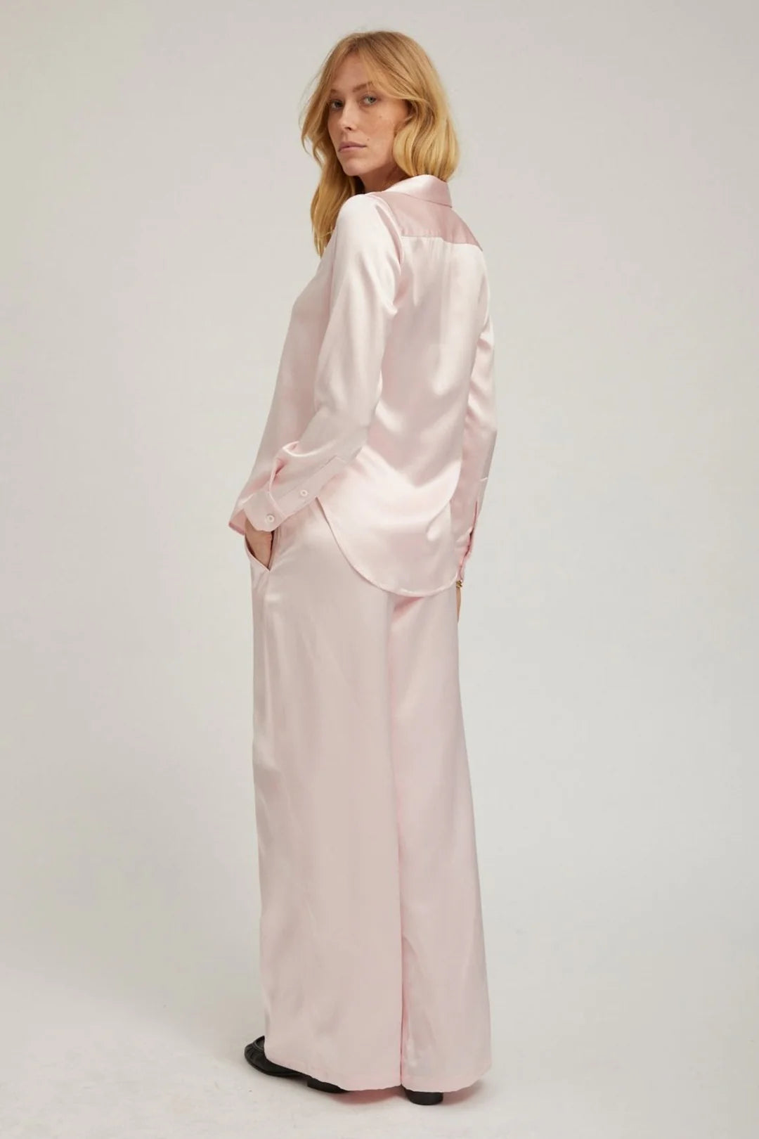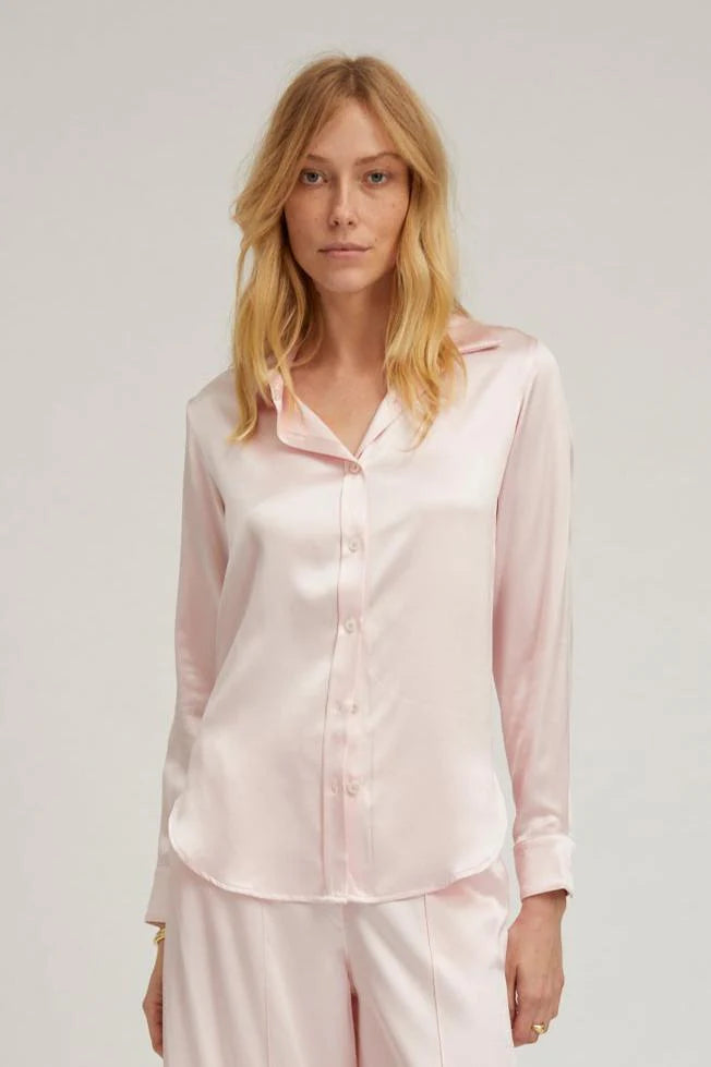 Our take on the classic collared button down, made in a luxurious and featherweight silk. Designed to have a slightly more slimming fit, this button down pairs well with our silk trousers or your favorite leather trousers.
